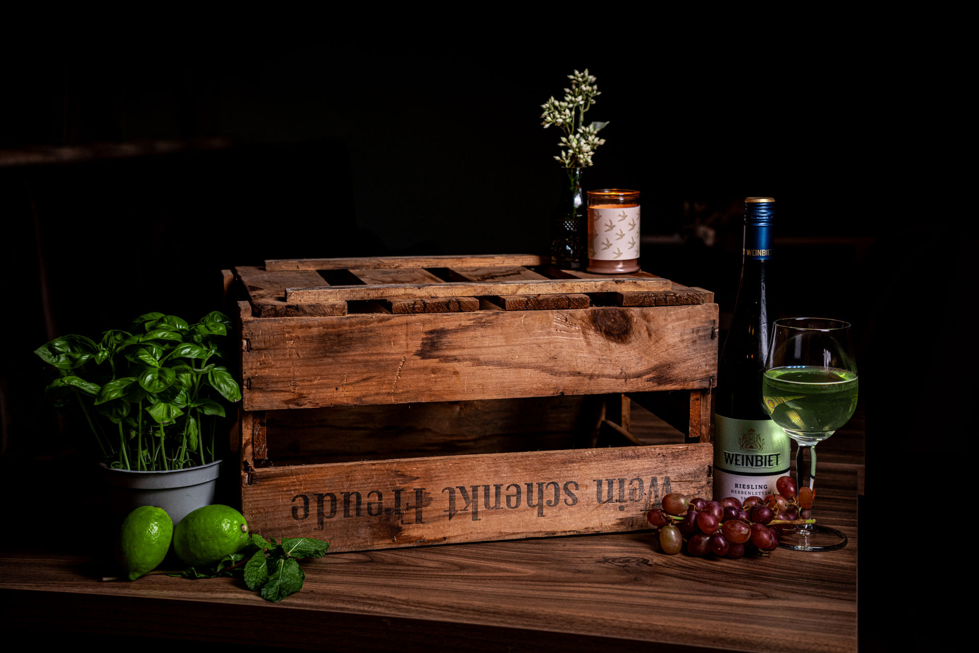 Für alle, die es etwas bequemer mögen: Mietet Euch für nur 5 Euro eine unserer liebevoll dekorierten kleinen Holzweinkisten. Sie verwandeln Euren Picknick-Platz in einen gemütlichen Tisch, auf dem ihr Eure Getränke und Speisen stilvoll abstellen könnt.